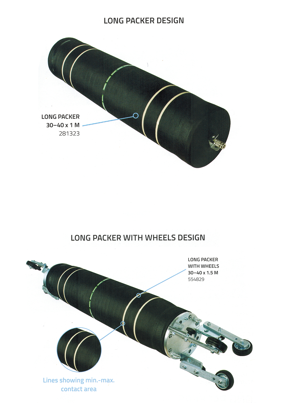 Sava Long Packers er egnet for reparasjoner av rør med diametre fra 200 til 800 mm. Long packers er tilgjengelig med eller uten hjul. De er perfekte for erfarne brukere når en bypass ikke er nødvendig.